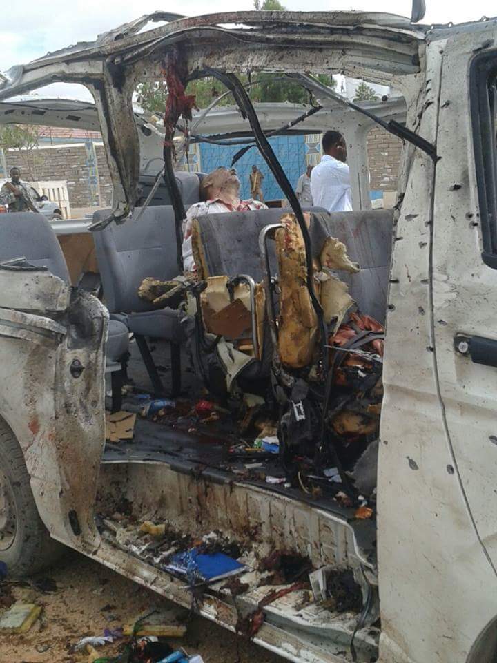 Photos circulating on social media websites showed several bodies in the torn-up UN bus. The roof of the bus was ripped off by the explosion.